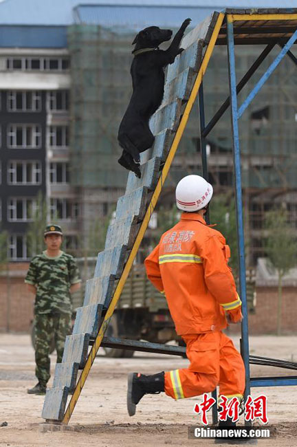 Recently 40 sniffer dogs participate in a competition in Taiyuan city, north China's Shanxi province. (CNS/Wu Junjie)