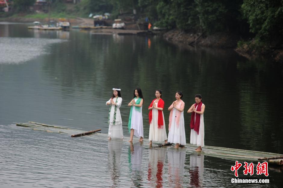 Beauties perform Yoga on water in Changsha (6)