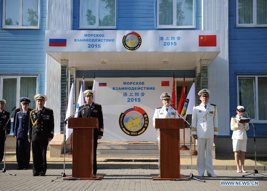 Photo taken on May 21, 2015 shows the closing ceremony of the joint naval exercises in Novorossiysk, Russia. Chinese and Russian naval forces on Thursday ended their joint military exercises in the Mediterranean, according to an online news briefing from the Chinese Defense Ministry. (Xinhua/Dai Tianfang)