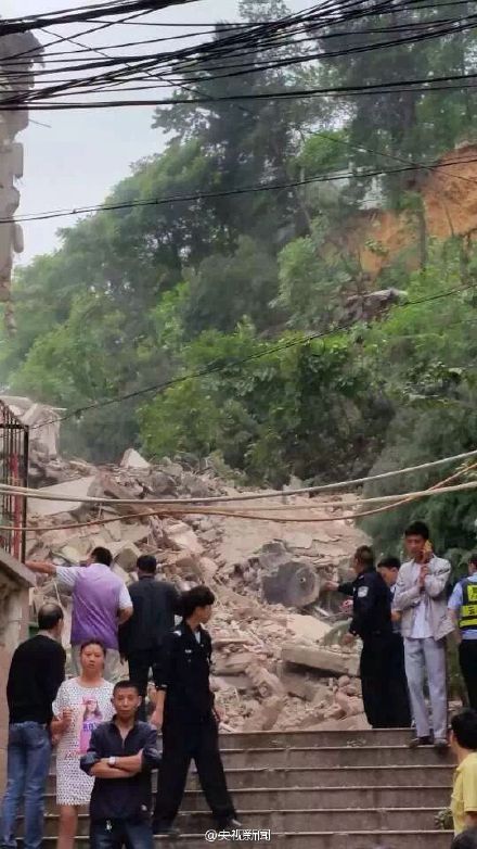 A nine-story building collapses in Guiyang, capital of southwest China's Guizhou Province, on Wednesday. [Photo: weibo.com/CCTV News]