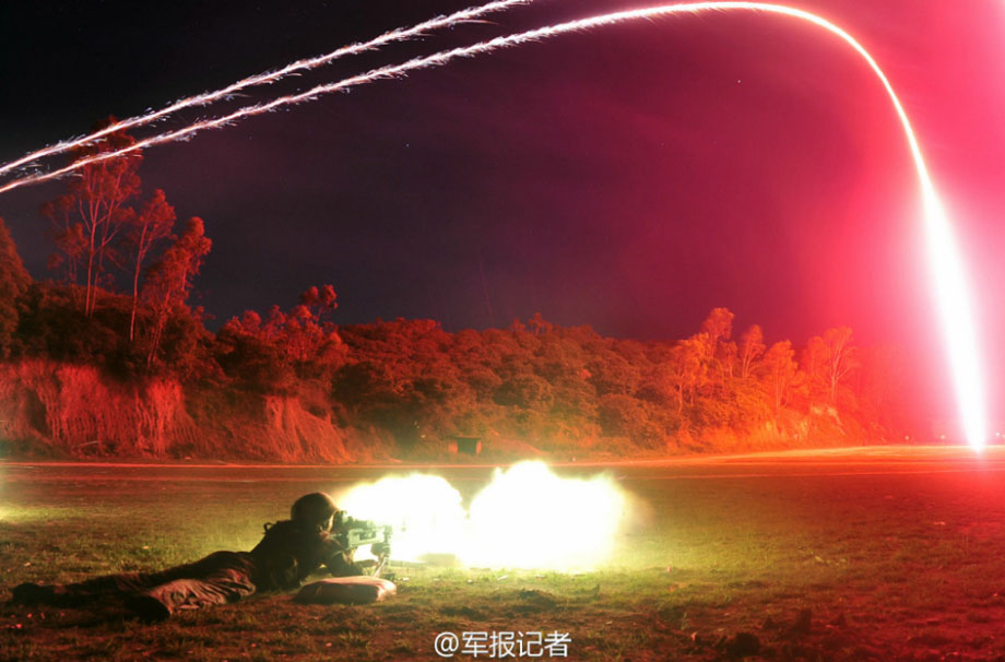 A regiment of China's 31st Group Army carries out live fire exercise with heavy machine guns to perfect their combat skills at night.(Photo/81.cn)