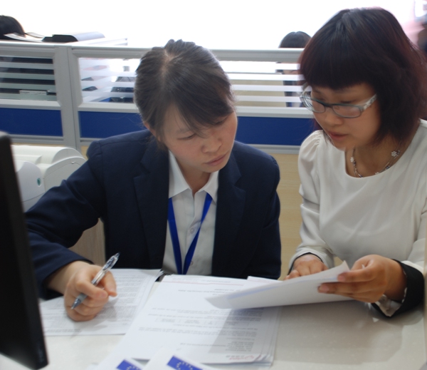 Staff members in the center help to check application material on May 22, 2015. (People's Daily Online/Yuan Can)