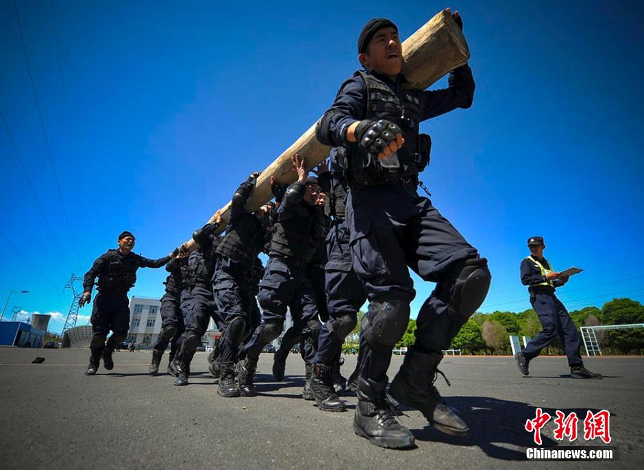 Special police force conducted multi-subject training in Urumqi, northwest China’s Xinjiang Uygur Autonomous Region on May 21, 2015. The training subjects included 110-meter steeplechase, abseiling, physical training, shooting, etc. Established in 2010, the special police force of Xinjiang has played an important role in combating terrorism and maintaining social stability. (Chinanews/Liu Xin)