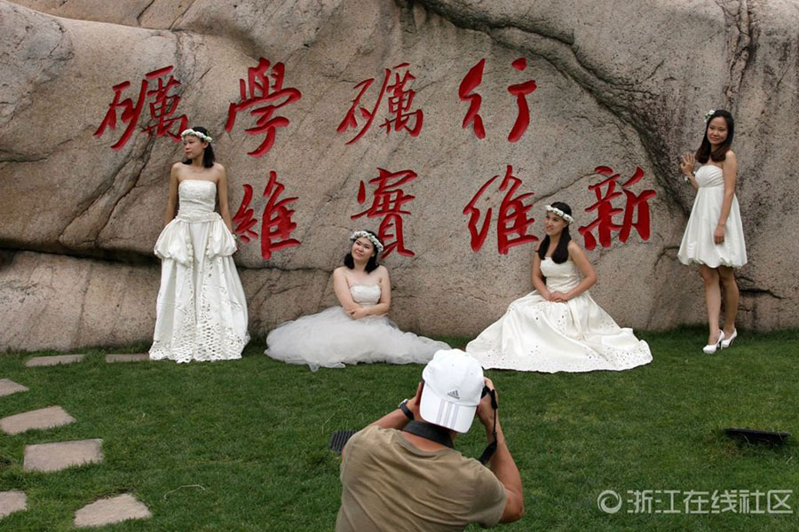 Upon graduation, students wearing various styles of clothes pose for photos to celebrate youth on the campus of Zhejiang Normal University.(Photo/zjol.com.cn)