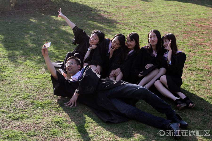 Upon graduation, students wearing various styles of clothes pose for photos to celebrate youth on the campus of Zhejiang Normal University.(Photo/zjol.com.cn)