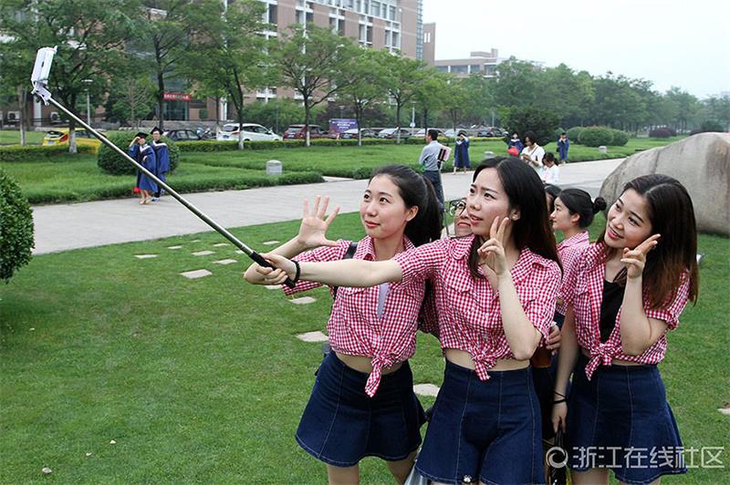 Upon graduation, students wearing various styles of clothes pose for photos to celebrate youth on the campus of Zhejiang Normal University.(Photo/zjol.com.cn)