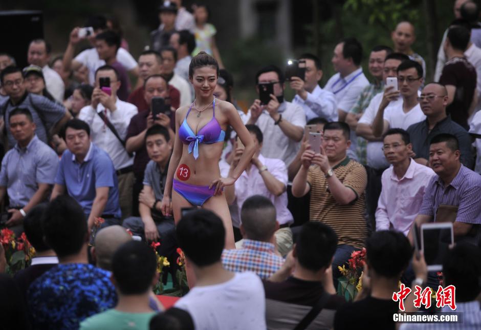 Charming contestants attend the swimsuit competition in a model contest in southwest China’s Chongqing on May 24, 2015. (Chinanews/Chen Chao)