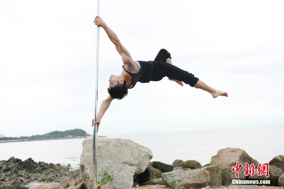 Wu Xin, who represented China to attend the pole dancing world championship early this year, is an outstanding male pole dancer. Male pole dancers are scarce in China since they are still misunderstood by some people. However, Wu Xin, as the chief couch of a famous pole dancing school, has decided to train more male pole dancers for athletic pole dancing. (Chinanews/Wang Xi)