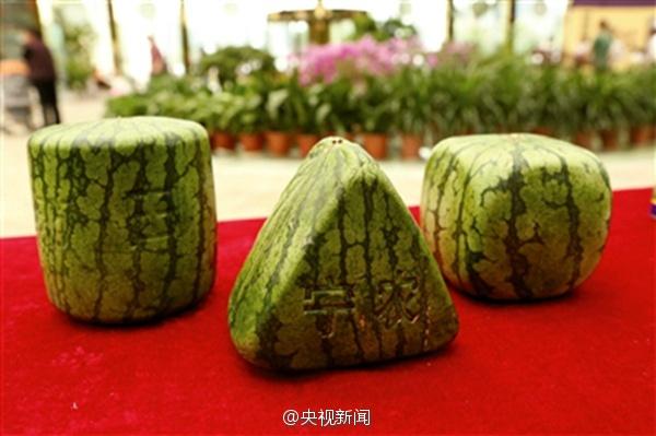 Farmers put different shaped moulds on watermelons 10 days after they begin to make the fruits. Two more weeks later, the moulds will be removed, and wait for another 10 days, you will get a heart-shaped watermelon you have never seen.