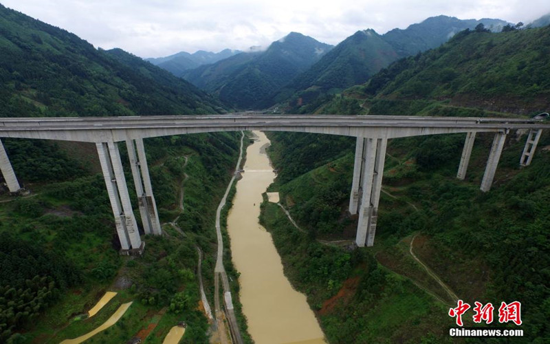 The spectacular highway bridge over the Laishu River. (Chinanews.com/Chen Wen)