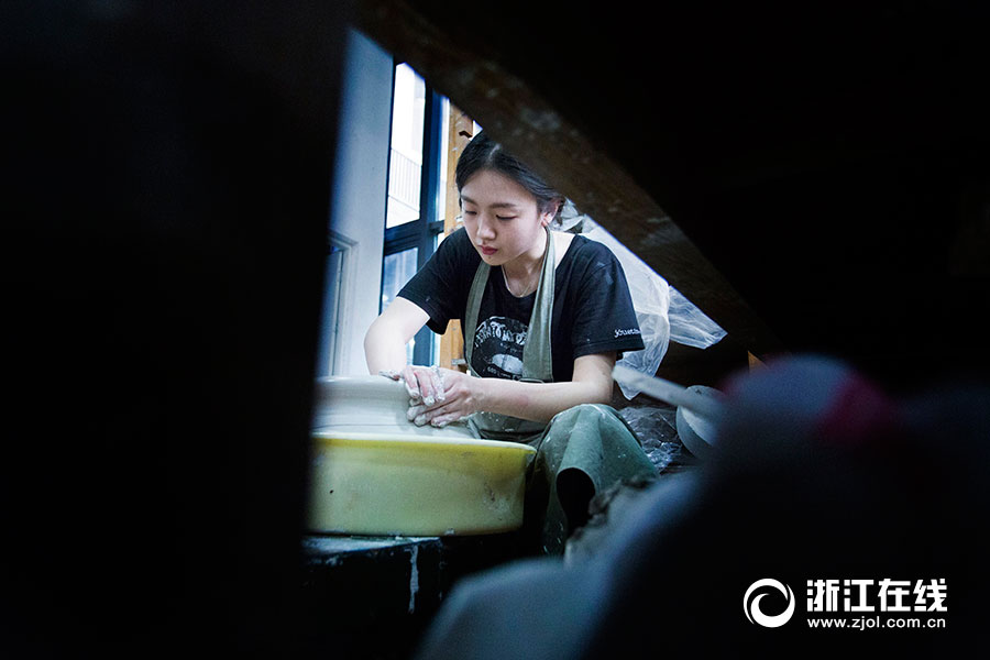 Jiang Yan, born in the 1990s, is a senior at the department of ceramics and crafts, China Academy of Art. In the period before graduation, she devoted considerable time and efforts to making pottery.(Photo/zjol.com.cn)