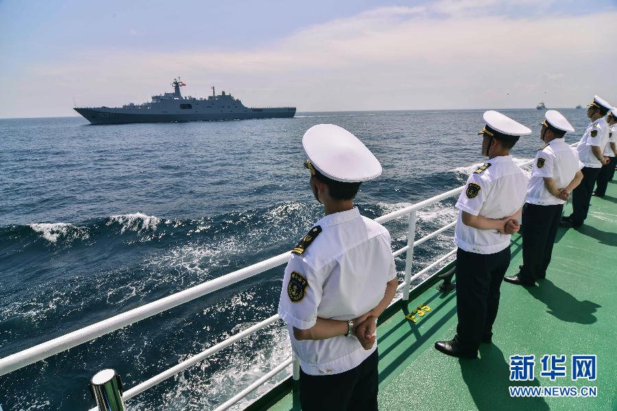 Crew of China's marine patrol ship Haixun 31 under inspection.(Photo/Xinhua)