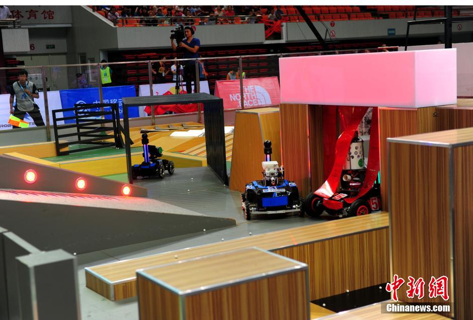 The final of central and south competition areas of 2015 China Robot Competition “RoBoMasters” was held in Huazhong University of Science and Technology in Wuhan, central China’s Hubei province on May 31, 2015. 22 teams from 17 universities attended the game. All the attending robots are developed independently. The 32 winners from different competition areas will take part in the national final in July in Shenzhen. (Chinanews/Zhang Chang)