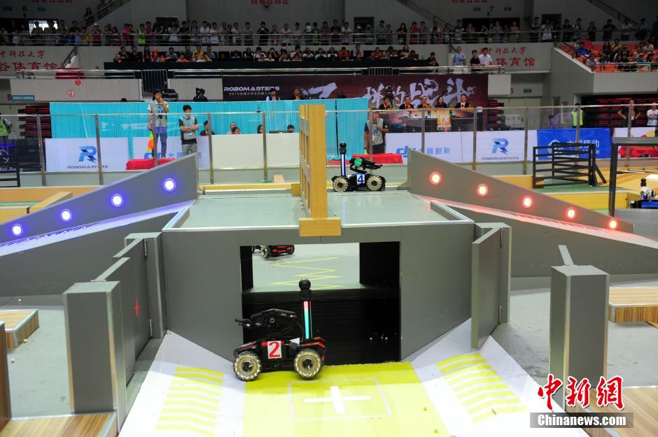 The final of central and south competition areas of 2015 China Robot Competition “RoBoMasters” was held in Huazhong University of Science and Technology in Wuhan, central China’s Hubei province on May 31, 2015. 22 teams from 17 universities attended the game. All the attending robots are developed independently. The 32 winners from different competition areas will take part in the national final in July in Shenzhen. (Chinanews/Zhang Chang)
