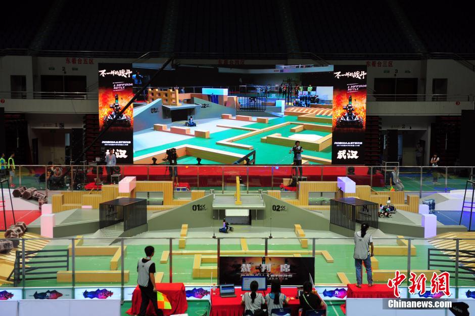 The final of central and south competition areas of 2015 China Robot Competition “RoBoMasters” was held in Huazhong University of Science and Technology in Wuhan, central China’s Hubei province on May 31, 2015. 22 teams from 17 universities attended the game. All the attending robots are developed independently. The 32 winners from different competition areas will take part in the national final in July in Shenzhen. (Chinanews/Zhang Chang)
