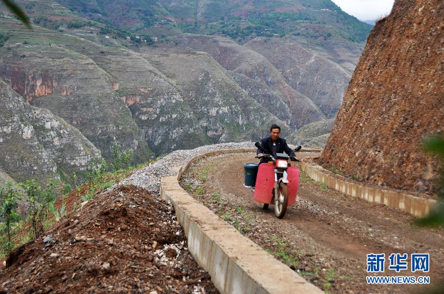 Xie Bihua takes the meal to the school with his motorbike on May 28, 2015. (Xinhua/Yang Wenbin)