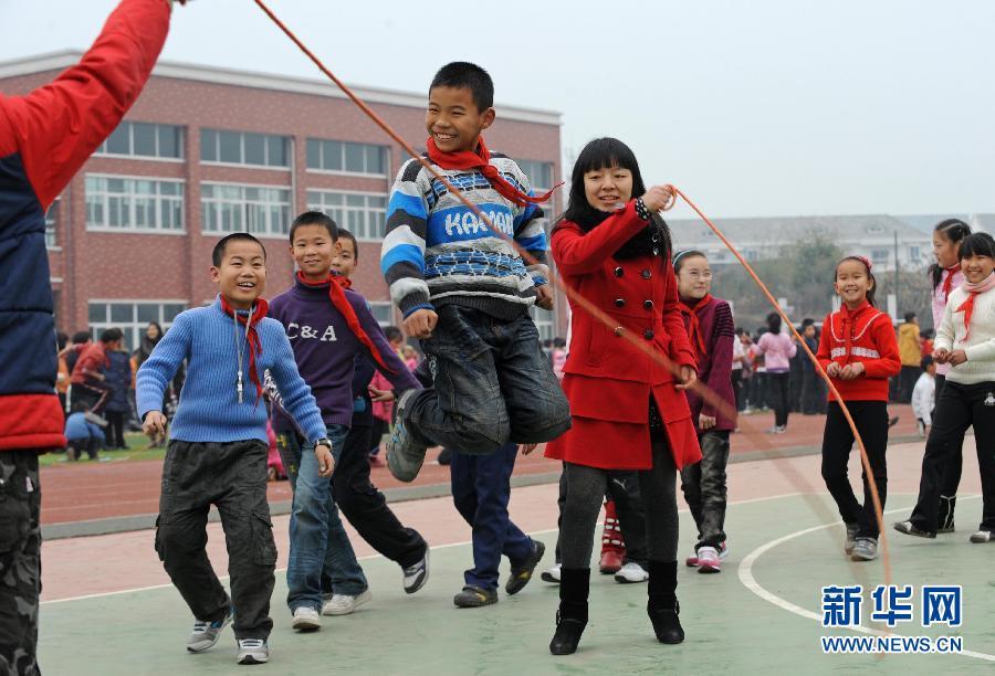 Pupils play rope skipping game in a primary school in Yidu, central China's Hubei province, Dec. 29, 2010. (Xinhua/Cao Lida)