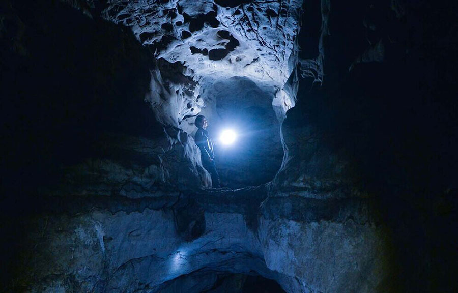 A villager throws his package into the hole and makes sure the direction with a flashlight. (Western China Metropolis Daily/Yang Tao)