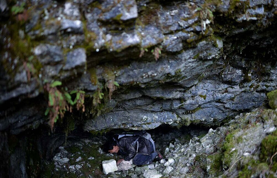 There are three entrances to the cubiloses cave. People need to creep into the hole less than 50 centimeters in diameter. (Western China Metropolis Daily/Yang Tao)