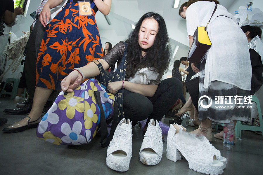 Mei arranges the shoes and decorations. (Photo source: zjol.com.cn)