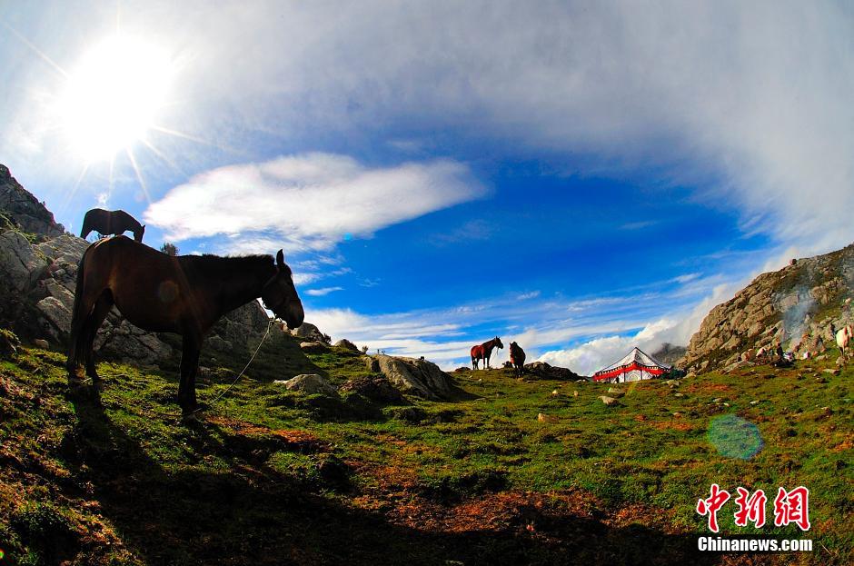 Located in Rangtang county of southwest China’s Sichuan province, Haizishan Mountain is 4,760 meters above the sea level. Surrounded by picturesque alpine pasture and mountain lakes, the Haizishan Mountain is full of natural beauty. (Chinanews/Huang Lei)