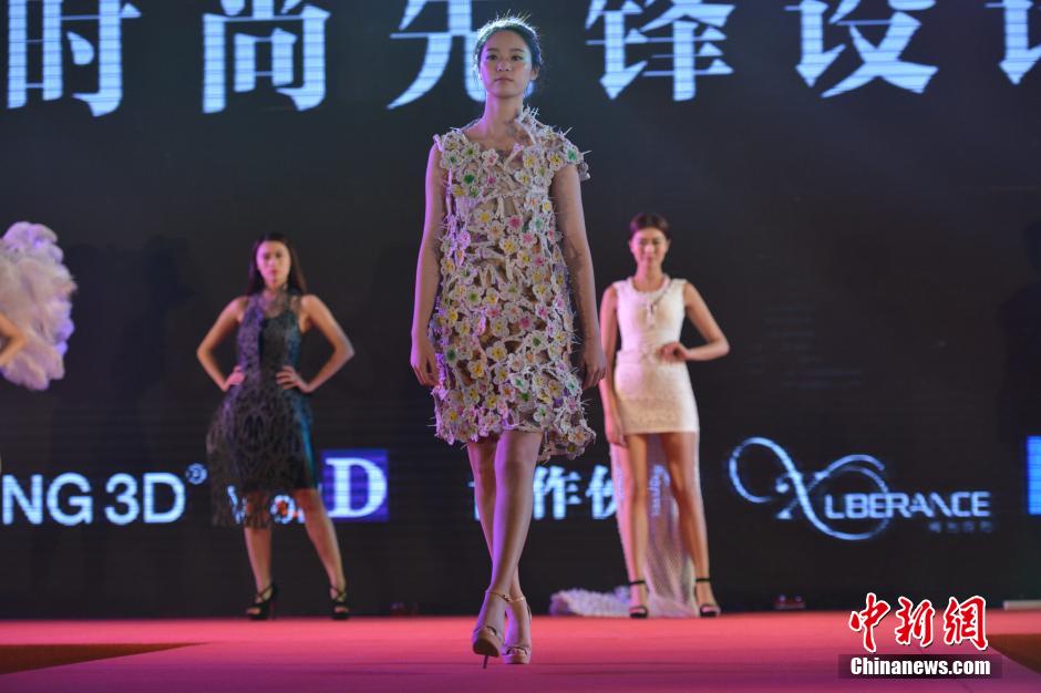 Models present 3D printed creations at the undergoing 2015 World 3D Printing Technology Industry Conference & Expo in Chengdu, June 3. (CNS Photo)