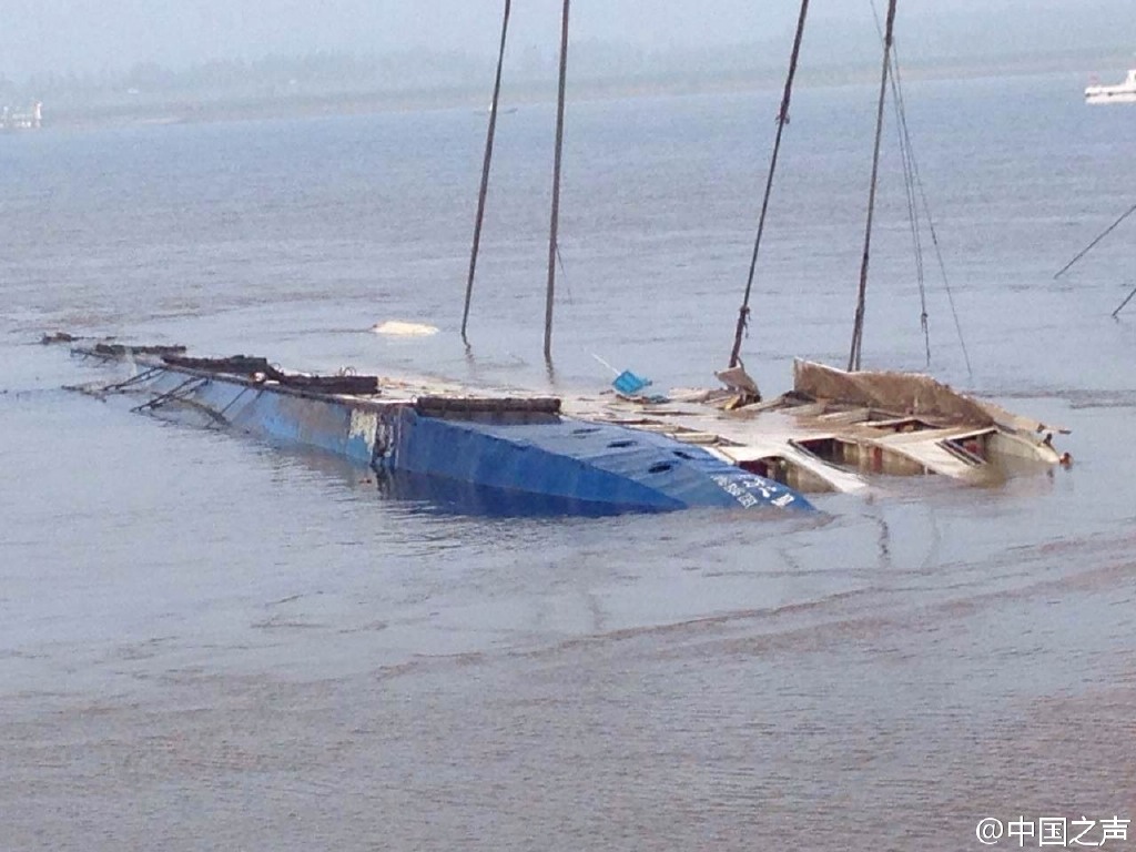 Rescue team turns capsized cruise ship 90 degrees onto its side. (Photo/ CNR.cn)