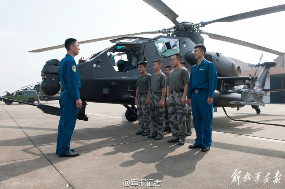 More than ten gunships and heavy-lift helicopters from the PLA 42nd Group Army head towards an airport on May 27, 2015. They arrived at the destination on May 31, 2015 after traveling more than 2,000 kilometers.(Photo/81.cn)