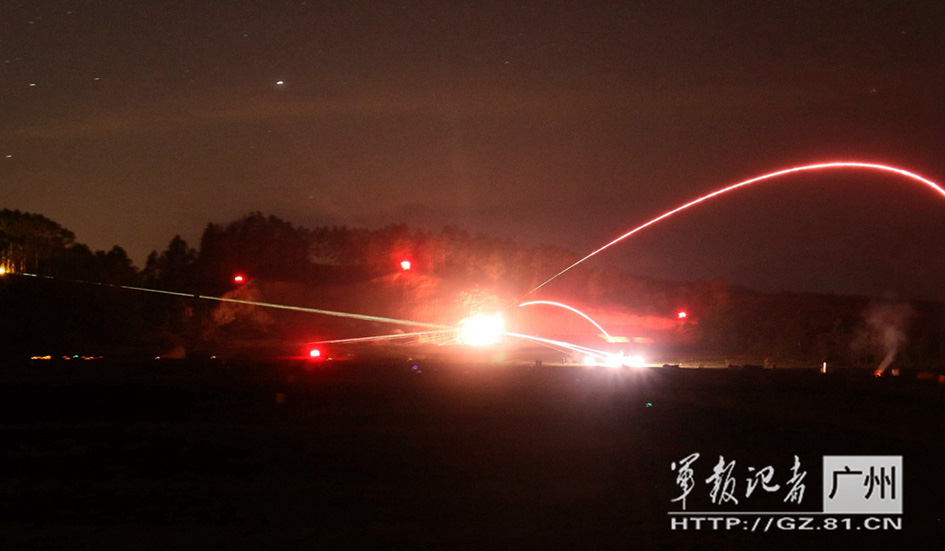 In order to cater to the needs of future battlefield, one division in Guangzhou Military Region has stepped up night training. On the night of May 25, 2015, experts and leaders from Guangzhou Military Region gave approval to the standards for the last few night training programs.(Photo/81.cn)