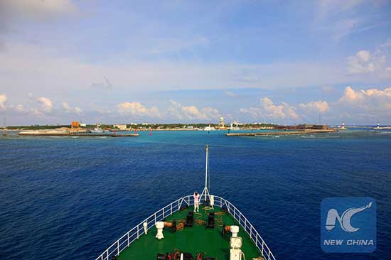 Photo shows a patrol vessel arrives in Yongxing Island of Sansha City on the South China Sea, south China, April 22, 2015. (Xinhua Photo by Guo Qiuda)