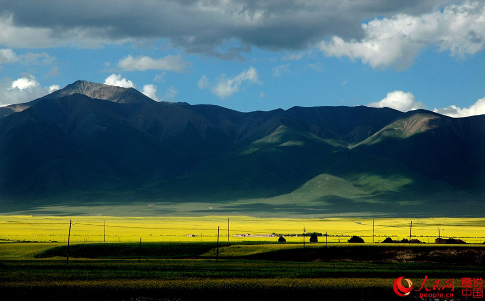 Picturesque scenery of rape flowers in Menyuan Hui Autonomous County, northwest China's Qinghai Province. More than 500,000 mu (about 33,000 hectares) of rape flowers attract many tourists here. (Photp/people.cn)