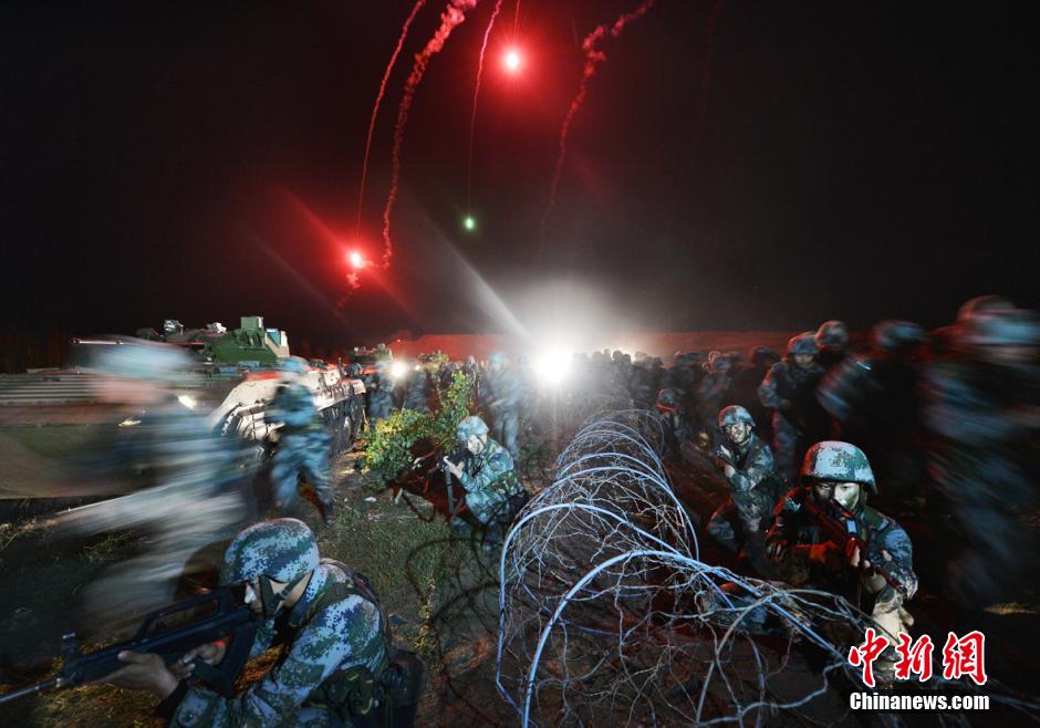 A mechanized infantry brigade from the PLA 16th Group Army conducts night training in summer.(Photo/Chinanews.com)