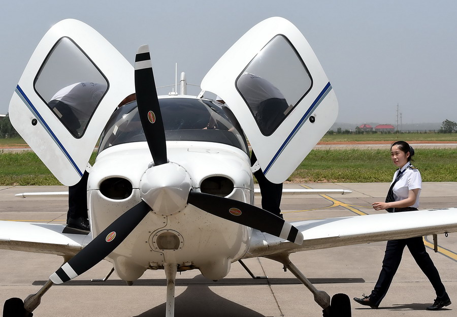 Geng Chen prepares to participate in the flight training. (Xinhua/Wang Song)