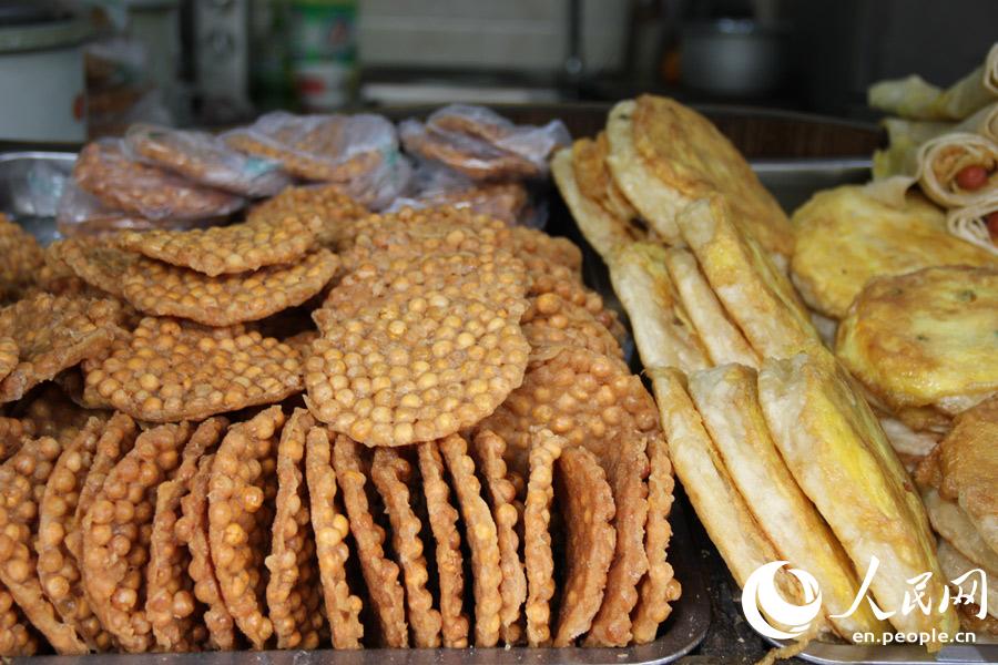 Photo shows a variety of local snacks sold in Jinli Pedestrian Street. Jinli Pedestrian Street is one of the oldest and busiest streets in Chengdu, southwest China’s Sichuan province. You can get a taste of authentic Chengdu flavor by trying local snacks and specialties.(People's Daily Online/Huang Jin)