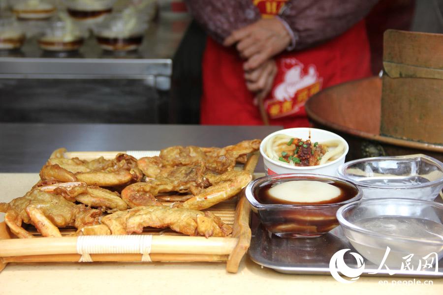 Photo shows a variety of local snacks sold in Jinli Pedestrian Street. Jinli Pedestrian Street is one of the oldest and busiest streets in Chengdu, southwest China’s Sichuan province. You can get a taste of authentic Chengdu flavor by trying local snacks and specialties.(People's Daily Online/Huang Jin)