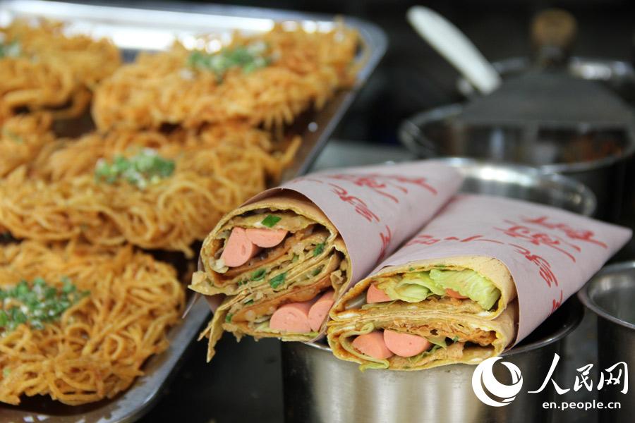 Photo shows a variety of local snacks sold in Jinli Pedestrian Street. Jinli Pedestrian Street is one of the oldest and busiest streets in Chengdu, southwest China’s Sichuan province. You can get a taste of authentic Chengdu flavor by trying local snacks and specialties.(People's Daily Online/Huang Jin)