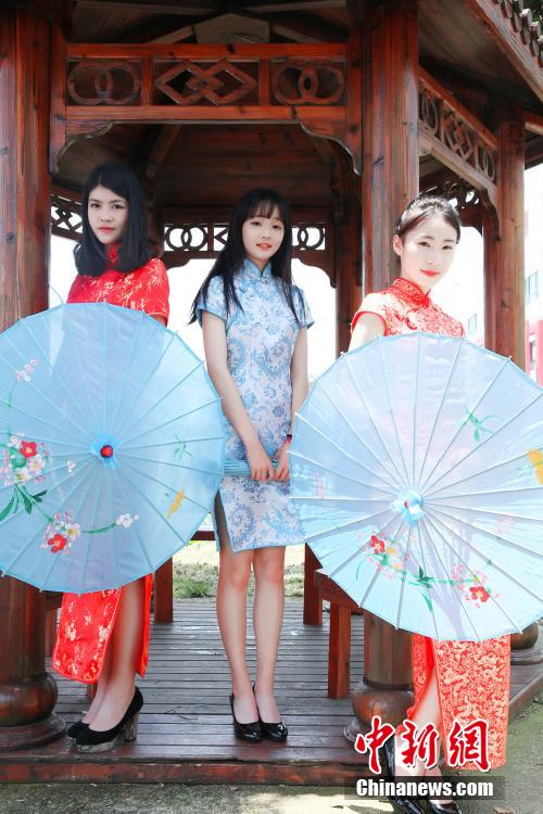 Dressing up in different costumes, the students majoring in in-flight service in Jiangnan Film and Television Art College pose for graduation photos in east China’s Jiangsu province on June 8, 2015. (Chinanews/Sun Quan)