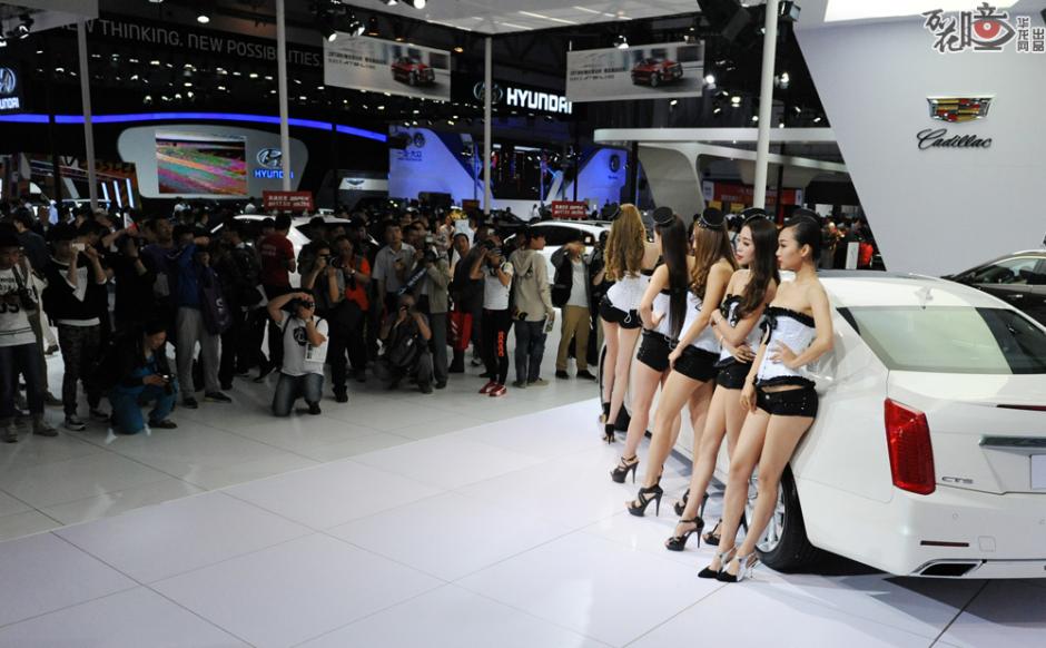 Car models show their perfect figure and sweet smile before cameras. Sun said that she stood for more than four hours, wearing high-heeled shoes. During a break at noon, she grabs a bite to eat. (Photo/cqnews.net)