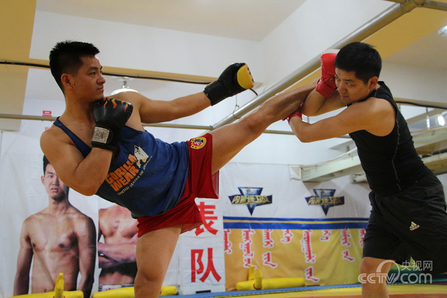 Bai Rui often practices boxing in the club run by his classmate. He still likes sports very much. (CNTV/Du Xiaojing)
