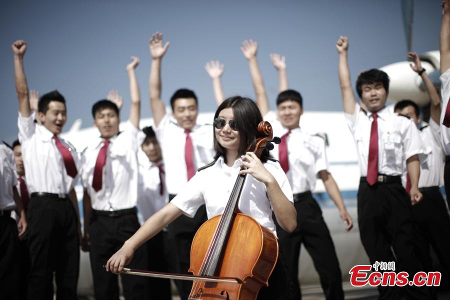 Graduates of the Civil Aviation University of China pose for a graduation photo in Tianjin, June 11, 2015. The graduates include three female pilots. (Photo: China News Service/Tong Yu)