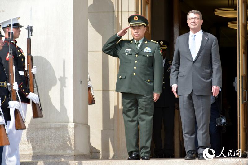 Defense Secretary Ash Carter greeted the Chinese Central Military Commission Vice-Chairman Fan Changlong and his delegation as Fan's motorcade arrived 10am at the Pentagon gate facing the Potomac River.