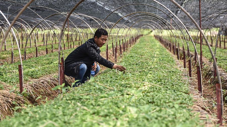 Zhu Guilin, a villager, weeds at his ginseng plantation at Yulin Village in Ji'an, northeast China's Jilin Province, June 11, 2015. China has a long history of cultivating ginseng, which is considered to be nutritious and to have medicinal value in traditional Chinese medicine. Considered as the world's largest ginseng production area, Jilin produces about 85 percent of China's total ginseng output and 70 percent of the world's output. More than 98 percent of ginseng in Jilin is currently cultivated, not grown in the wild. (Xinhua/Wang Haofei)