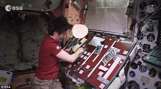 The ESA astronaut and Italian Air Force captain begins by opening the packet of tortillas, taking one out and leaving it to float in front of her.