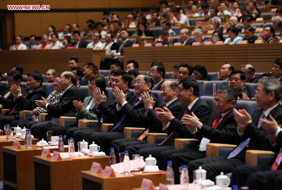 Yu Zhengsheng, chairman of the National Committee of the Chinese People's Political Consultative Conference, attends the opening ceremony of the 7th Straits Forum in Xiamen, southeast China's Fujian Province, June 14, 2015. (Xinhua/Liu Weibing)