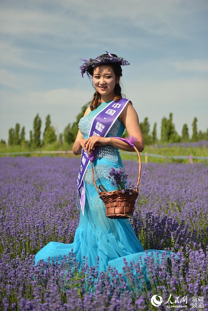 A “lavender girl” poses for photo in the Lavender field. (Photo/people.cn)