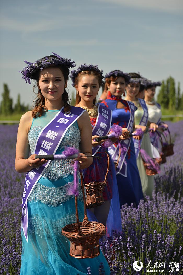 “Lavender girls” pose for photo in the Lavender field. (Photo/people.cn)