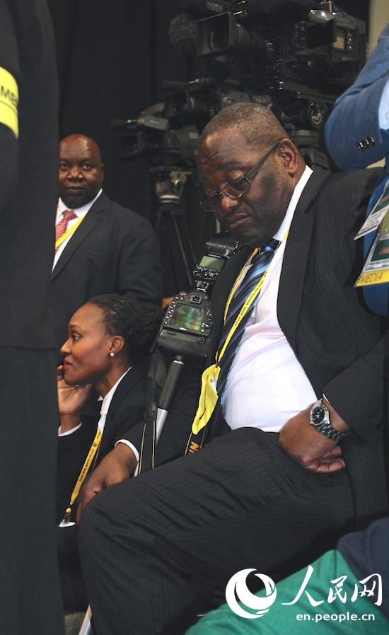 Journalists wait at the scene for the group photo session of presenting heads of African states and government, during the 25th Summit of the African Union in Johannesburg on June 14th, 2015. (People’s Daily Online / Zhang Jiexian)