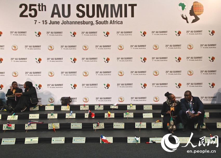 Journalists wait at the scene for the group photo session of presenting heads of African states and government, during the 25th Summit of the African Union in Johannesburg on June 14th, 2015. (People’s Daily Online / Zhang Jiexian)