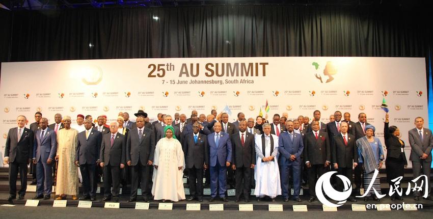 Heads of African states and government are pictured during the opening ceremony of the 25th Summit of the African Union in Johannesburg on June 14th, 2015. (People’s Daily Online / Zhang Jiexian)