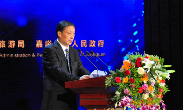 Li Jinzao, Chairman of China’s National Tourism Administration addresses the opening ceremony of the Fifth Dunhuang Tour-Silk Road International Tourism Festival. (People’s Daily Online/Zhang Yuan)
